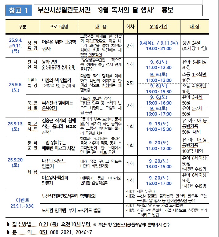 부산광역시,책과 예술로 물드는 9월… 부산시청 들락날...
