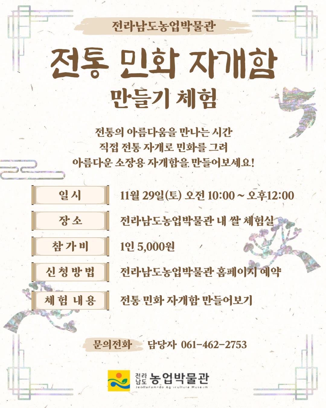 전라남도농업박물관, 29일 전통 민화 자개함 만들기 체...