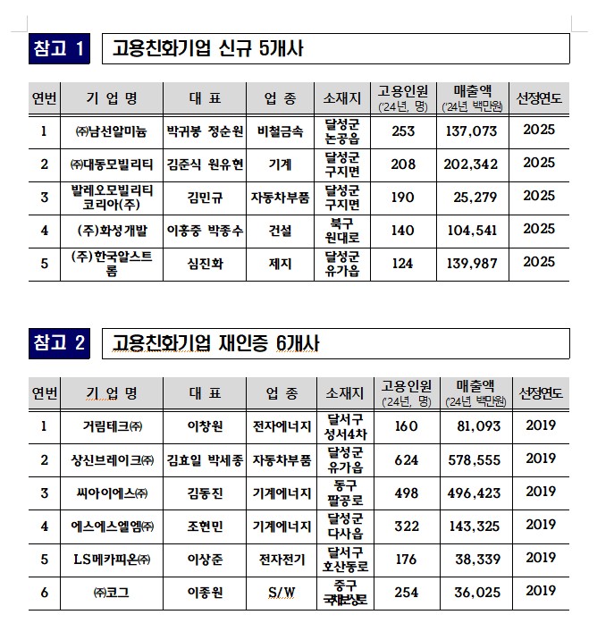 대구광역시. 대표 일자리 ‘2025년 고용친화기업’ 5개...