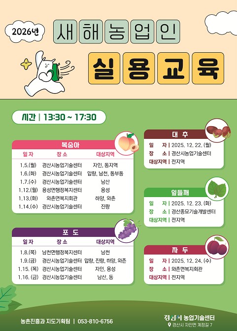 경산시, 2026년도 새해농업인실용교육 실시 - 총 13회 ...
