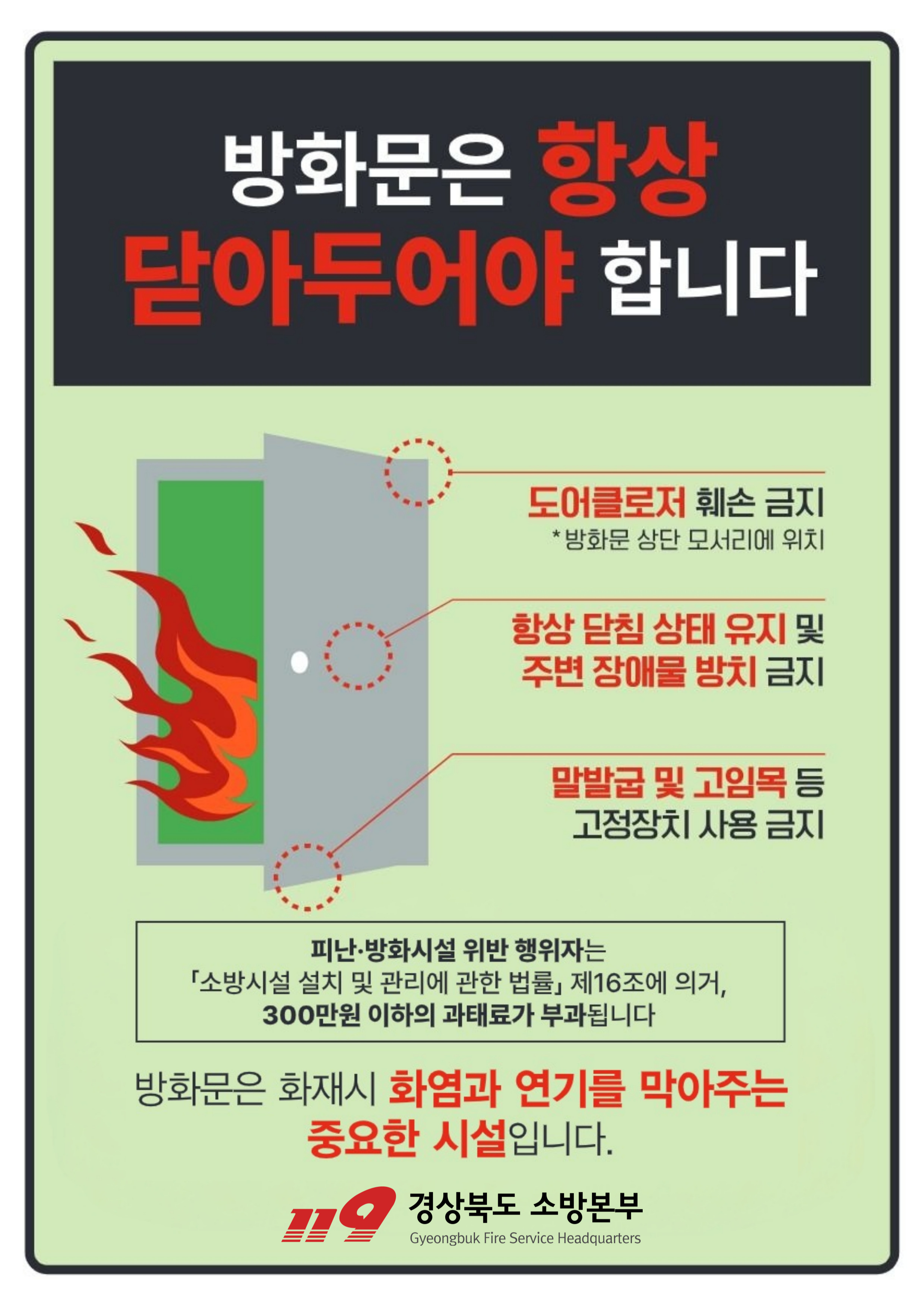 경산시 소방서, 겨울철 화재확산 차단 위한 ‘방화문닫...