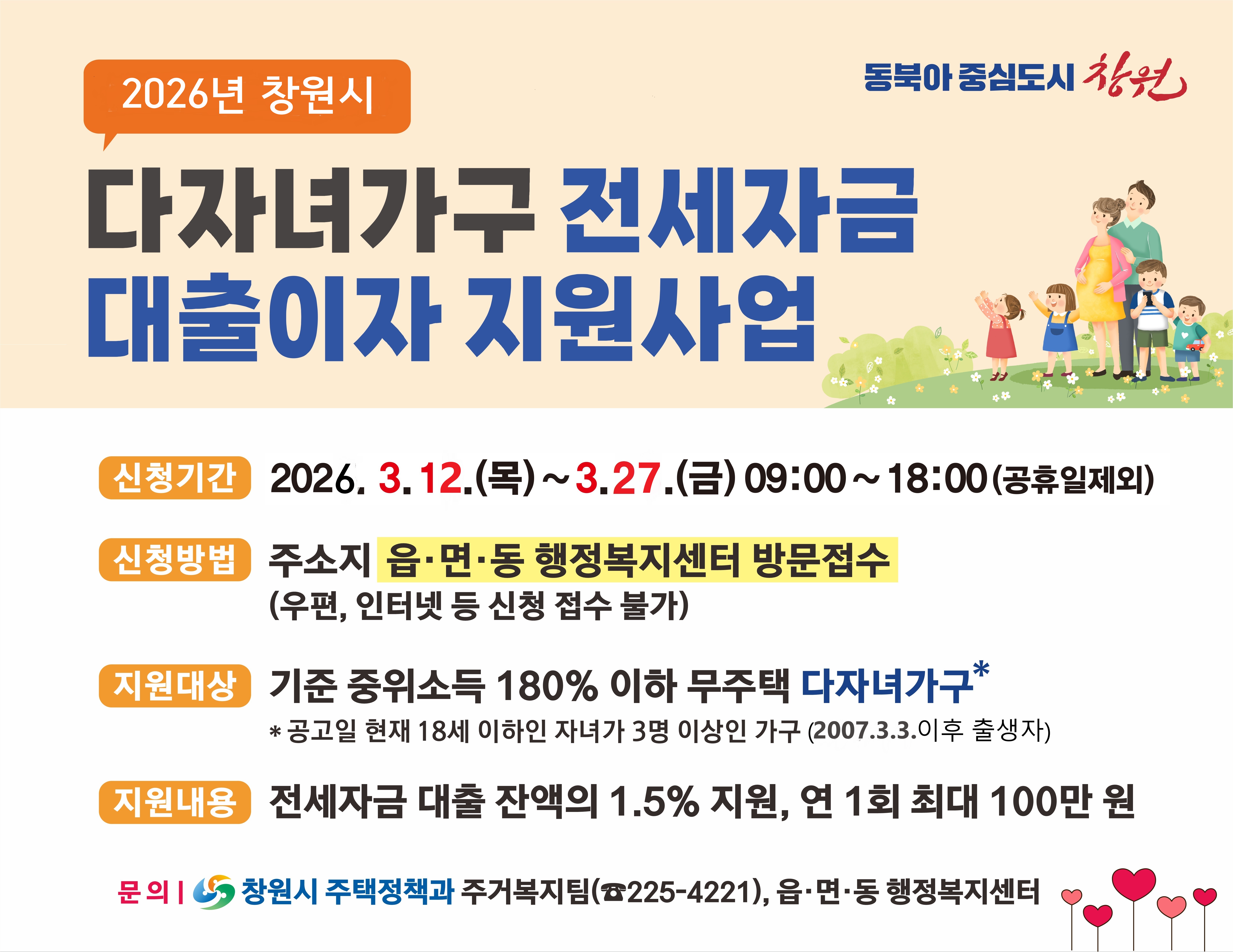 창원특례시, 다자녀가구 전세자금 대출이자 지원 대상자...